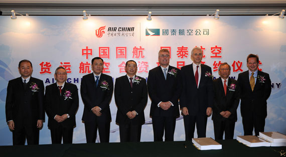 新浪航空讯 中国国际航空股份有限公司与国泰航空有限公司于2010年2月25日在北京就成立共同拥有的货运航空公司签署框架协议。